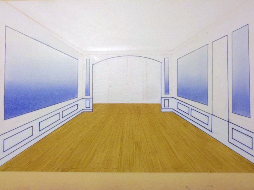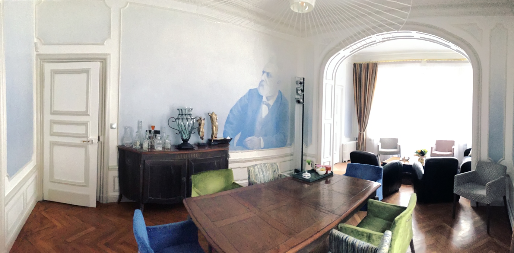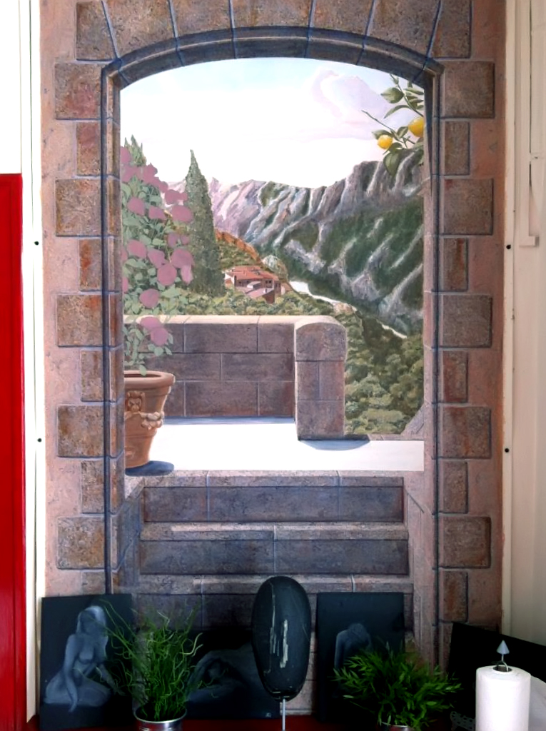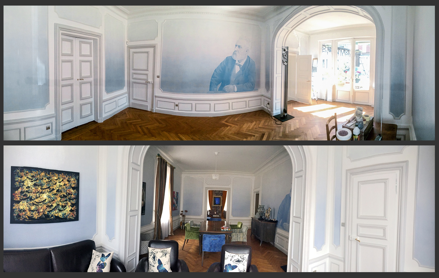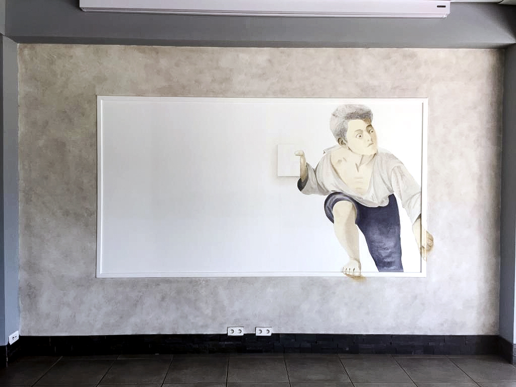 Peinture murale en trompe l'œil dans une salle des fêtes | Personnage