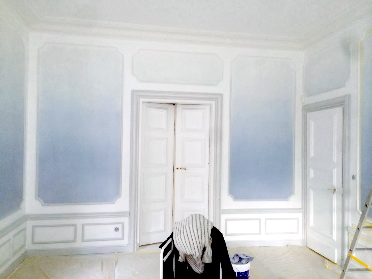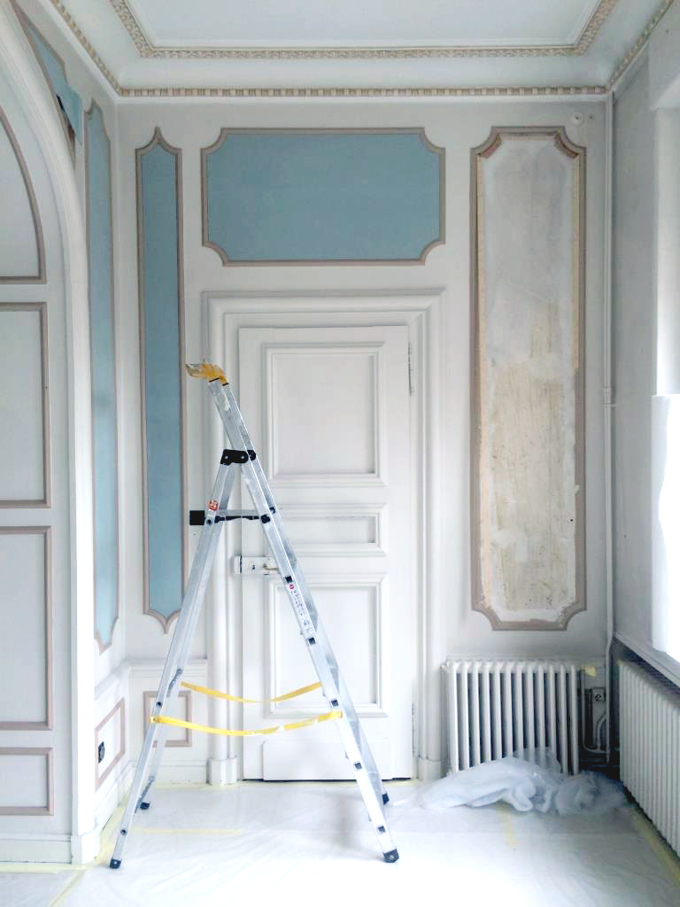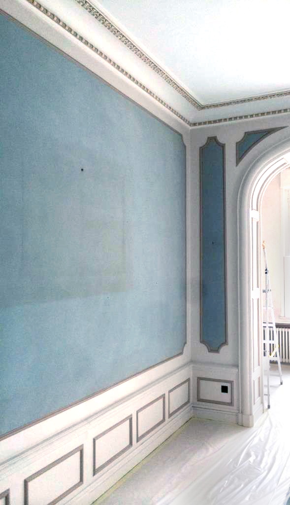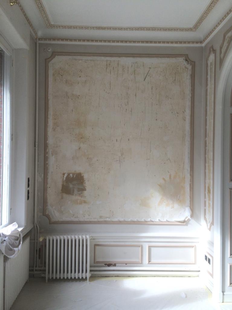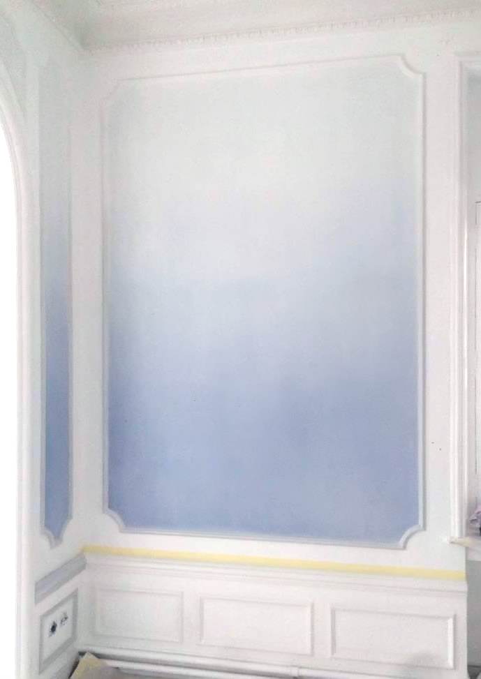 Restauration et patine murale salon maison à Chateauroux detail avant