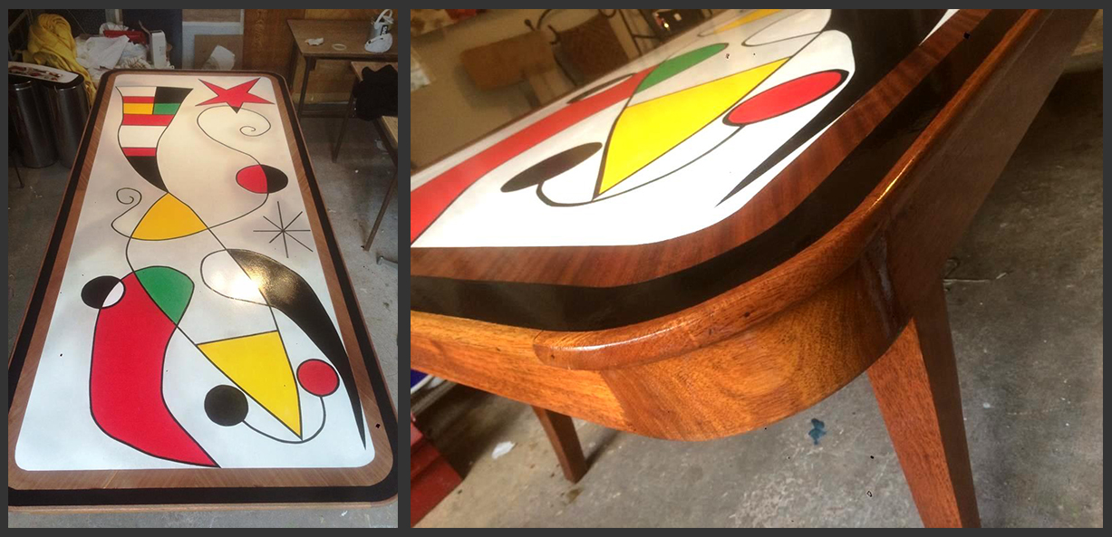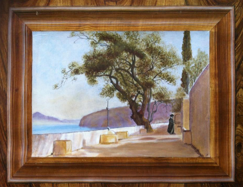 Peinture acrylique | Reproduction avec cadre effet faux bois noyer en trompe-l'œil