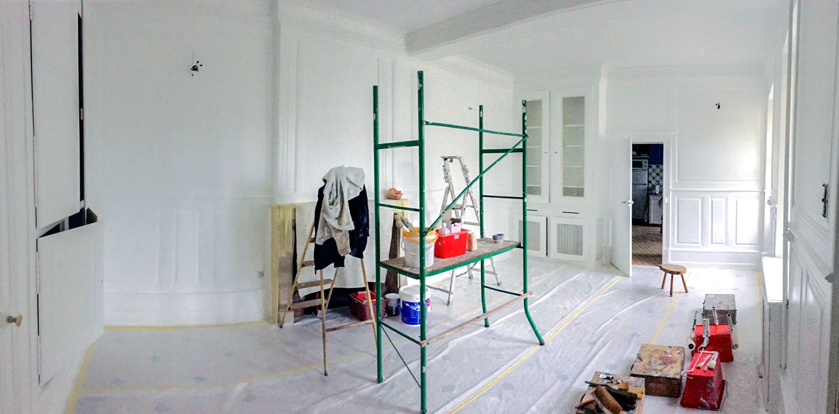 Restauration et patine murale salon maison à Chateauroux - Pendant les travaux
